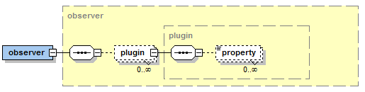 An observer represents the user interface part of the simulation environment. It is configured using mandatory attributes for the \~name\~, \~dataview\~ and \~perspective\~. Please note that the dataview and perspective attributes only represent the default settings of the observer window. The user can change these at runtime as she likes. Additionally, the \~killonexit\~ flag can be used to determine, if the application should be killed when the gui is closed. The observer offers an extension mechanism that allows the user interface being modified by adding new plugins. A plugin is represented with its own button on the top left of the observer. When activated the plugin can display its own view on the control area (lower left). A plugin is defined using \~name\~ and \~class\~ attributes. Plugin classes have to implement the \~jadex.application.space.envsupport.observer.gui.plugin.IObserverCenterPlugin\~.\ The interface is shown below and basically has methods for start and shutdown as well as fetching information such as name, icon and the view to display.