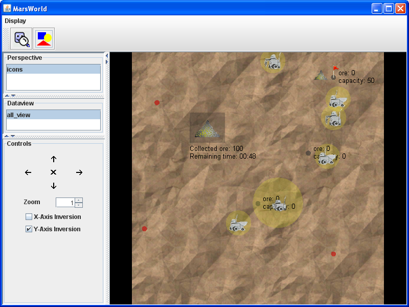 - Marsworld: Cooperative exploitation of ore on mars by different kinds of robots.
